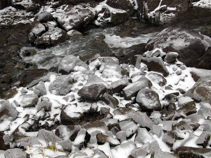 Djúpavík. Spaziergang. Eis hat sich auf den Steinen gebildet, denn hier wehte der kalte Wind besonders stark.