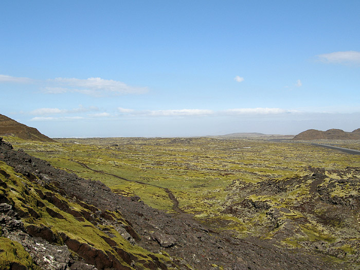 Bláfjöll - wieder kilometerweite Lavafelder, bedeckt mit grünem Moos.