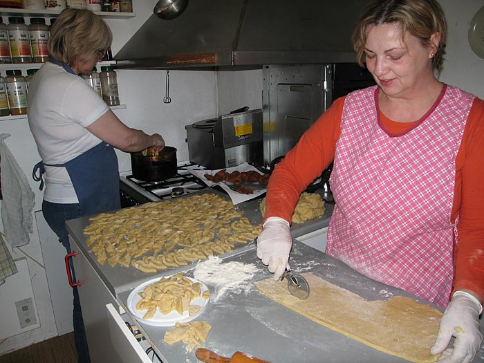 Genuß-Kunst: Jóna und Helga beim Backen der unzähligen Kleinur.