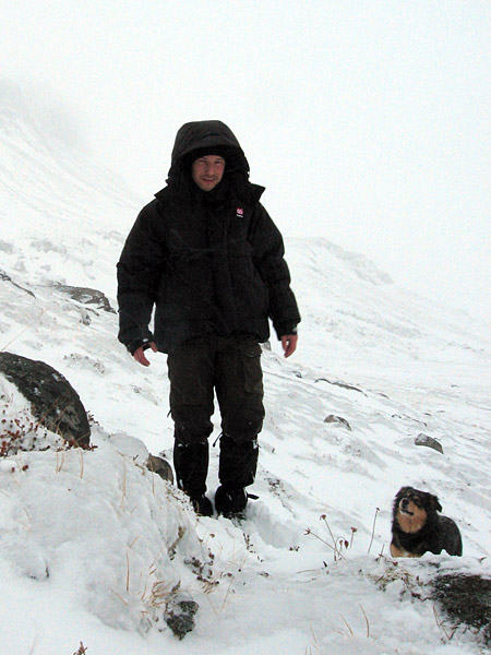 09.05.2008 – Djúpavík. Im Schnee. Mit Tína. (Bild 7 von 12 Bildern)