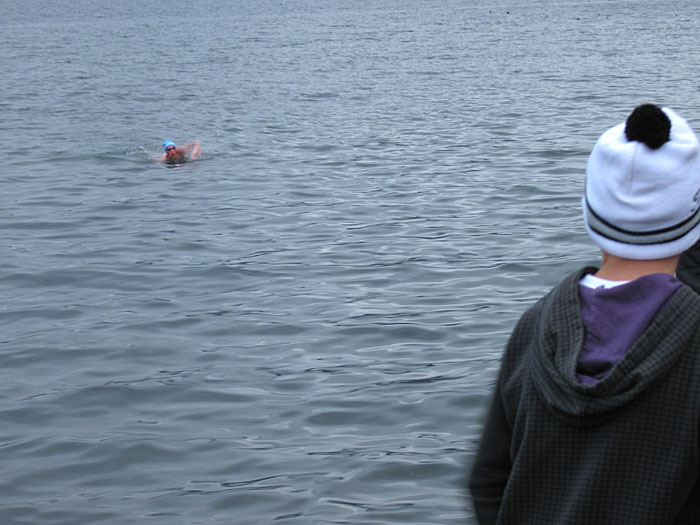 16 July 2008 – Djúpavík. Swimming a round. (Picture 1 of 2 pictures)