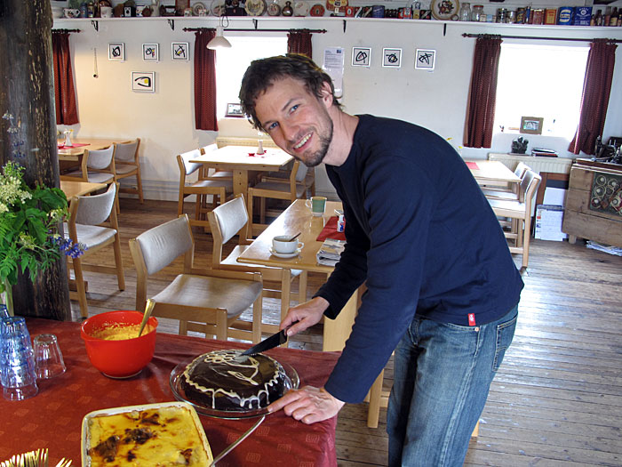 Me, cutting my birthday cake... Thank you all! Delicate...
