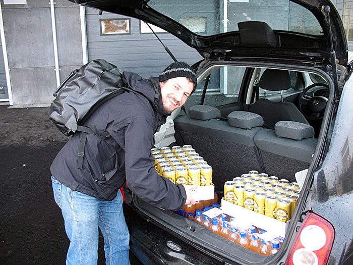 At the wrapping counter of Ölgerðin/Egill: The start of a long journey of several bottle and cans of Malt and Egills. A big thank-you and greetings to Sigga und Alex - they took the drinks to Munich in their car Egill (but not this one here on the picture). And of course